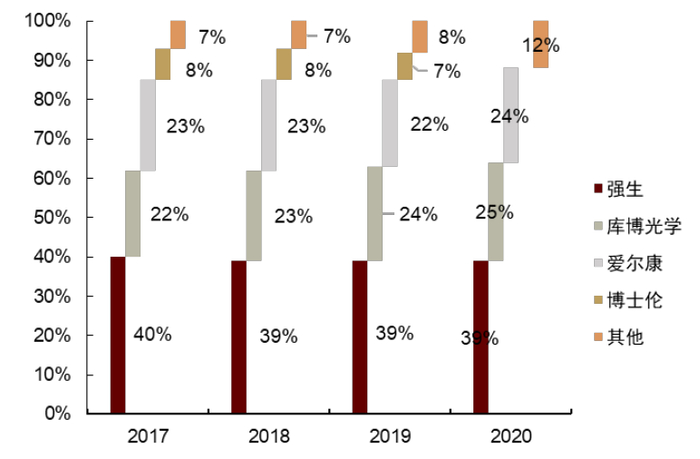 图表8:全球隐形眼镜市场竞争格局(2017-2020)