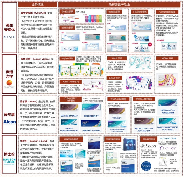 海外龙头:隐形眼镜为其重要盈利业务,品牌影响力及市场地位稳固