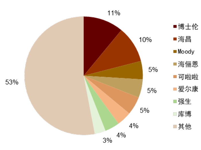 国内隐形眼镜市场行业集中度有所下降,中小厂家崛起。2021年博士伦与海昌占据国内份额基本相当,Moody、海俪恩等国产品牌紧随其后。目前国内领先企业大都采用OBM模式,拥有独立品牌并进行自主设计、生产、销售。
