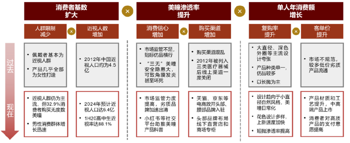 消费群体扩容+渗透提速+客户价值增长,全方位驱动美瞳行业迎来黄金发展期。我们认为行业未来高速增长的确定性高,有望迎来黄金发展时期。