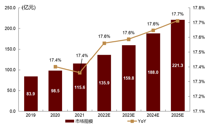 图表3:国内隐形眼镜零售市场规模(2019-2025E)