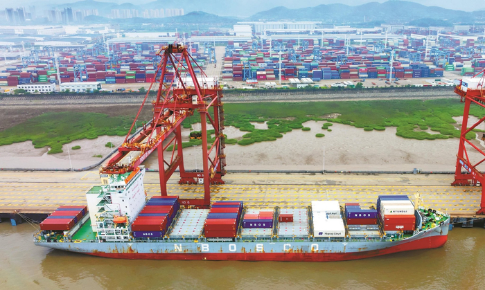 记者从宁波市交通运输局了解到,6月29日上午,宁波远洋“新明州106”轮满载光伏、汽车、家电、纺织品等集装箱货物从宁波舟山港梅山港区驶向阿拉伯联合酋长国杰贝阿里港,这标志着宁波远洋首条中东航线顺利开通,正式跻身跨大洋集装箱班轮公司行列。