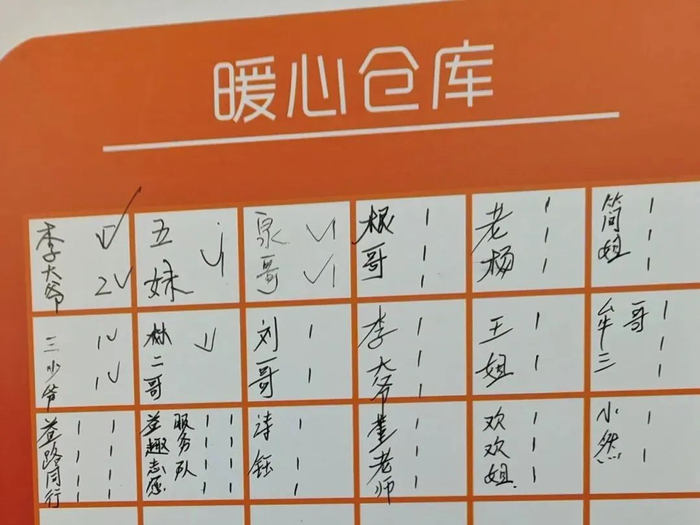 “到店消费的爱心人士都可预存一份或多份爱心米线,预存后,把名字及数量填进登记表中的小方格内。需要帮助的人们吃了‘暖心餐’后就在相应的数字后面打勾,代表‘领取’了相应的‘暖心餐’。”