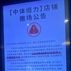 现场的另一份公告显示:中体倍力日月广场店已于2024年6月23日闭店,店内目前无人值守。考虑到公共设备设施的安全性及会员取回个人物品的诉求,商场已向中体倍力方发送告知函并通过电话、微信方式告知中体倍力方相关负责人到场配合。如中体倍力日月广场店方仍未响应,日月广场将在公安机关的见证下协助会员取回密码柜中的个人物品。公告落款方为海南海岛商业管理有限公司。