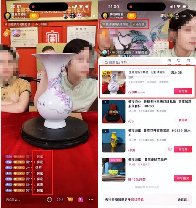 主播嘴里“最后一件”的大师遗作以标价2380元的闪购链接出现,页面显示该花瓶共有16件,数秒内售罄下架。记者蹲守当晚,这个平均在线观看人数仅140多的直播间卖了10-25万元。