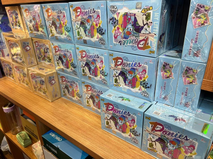 文具店内供整盒出售小马宝莉的卡牌在货架上排得满满当当。