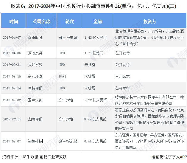2017年以来,中国水务行业投融资事件具体汇总如下: