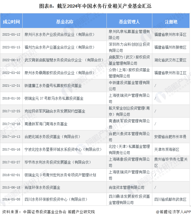 水务产业基金近年集中于福建省