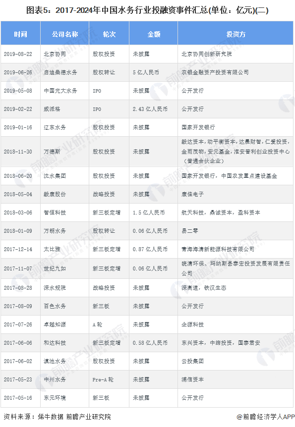 本文核心数据:水务行业投融资事件数量;水务行业投融资金额