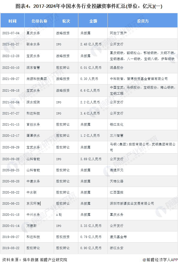 【投资视角】启示2024:中国水务行业投融资及兼并重组分析(附投融资事件、产业基金和兼并重组等)