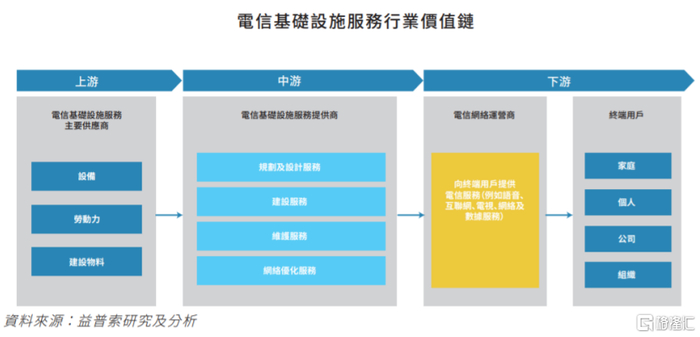 从电信基础设施服务行业价值链来看,上游为电信基础设施服务主要供应商,中游为电信基础设施服务提供商,下游是电信网络运营商及终端用户。