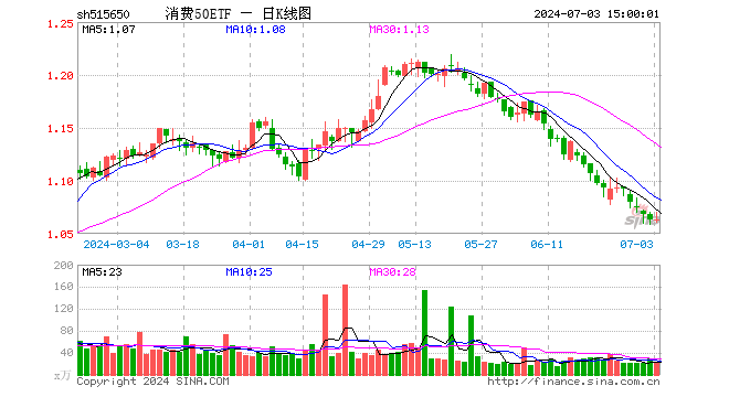 规模方面,截止7月2日,消费50ETF(515650)最新份额为13.59亿份,最新规模为14.45亿元。回顾2023年12月29日,消费50ETF(515650)份额为19.39亿份,规模为20.81亿元。即该基金今年以来份额减少29.91%,规模减少30.55%。