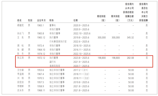 百万罚单不断,招商银行执行董事、副行长、首席风险官朱江涛的高薪受到关注,他在2023年领薪282.1万元。在招商系一众领薪的董监高中,仅次于执行董事、行长、首席执行官王良(345.32万元)、副行长王云桂(286.89万元)。
