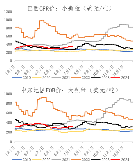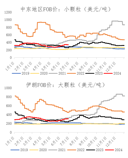 主产地来看,尿素价格从年初以来基本上维持在2000-2450元/吨的区间内运行,4月初运行至最低水平,6月上旬运行至高点。(数据来源:Wind、冠通研究)