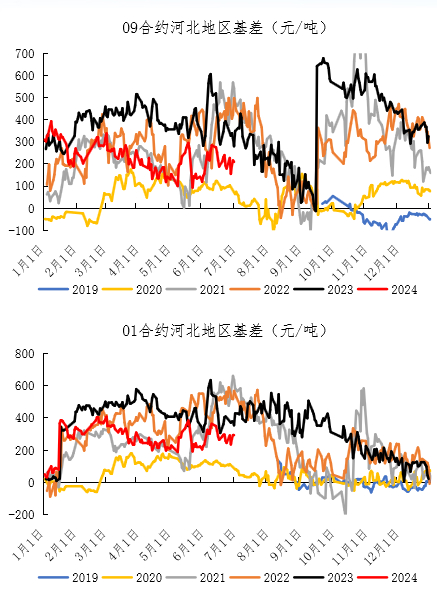 今年09合约基差波动幅度相对较小,从绝对值上看基本上回归近几年正常区间,波动幅度较小对于现货企业来说套保难度业加大。