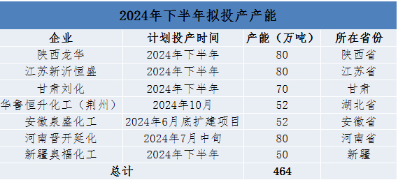 2024年尿素产能仍维持扩张态势,但是上半年投产不及预期,下半年仍有装置有投产计划。