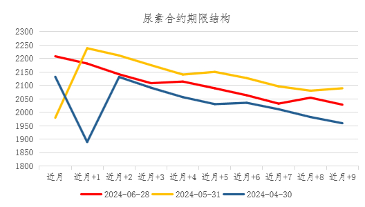 尿素期货合约持续呈现近强远弱的back结构。远月受产能投放计划影响,市场对于远月预期偏弱,因此远月合约持续贴水近月。下半年看,远月除了新产能投放预期外,还有需求环比上半年走弱的预期,因此back结构将延续。