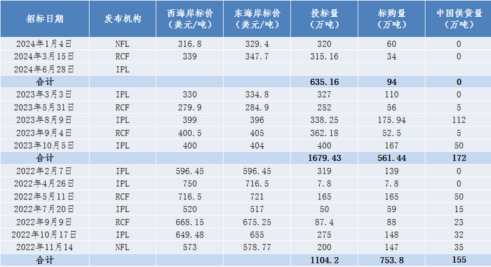 对比近两年印度招标情况,我们发现印度标购量呈现逐渐缩减的态势。近几年印度尿素产能持续扩张,对外依存度逐渐降低,根据安云思资讯,目前印度尿素库存处在1100万吨以上的高位,国内月产达到250万吨,往后两年印度仍有装置投产,后续随着印度尿素自给率的提升,预计外采逐渐下降。(数据来源:Mysteel、冠通研究)