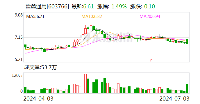 这一交易价格对应的隆鑫通用每股价格为6.6366元,较隆鑫通用7月2日的收盘价6.71元/股略有折价。