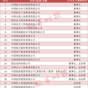 上半年,国资央企主要负责人跨公司调整的情况明显增多。既有央企名录中53家副部级央企单位间的相互调动,如中国电科集团前总经理陈锡明调任中国航天科工董事长;大唐集团前总经理刘明胜重回国家电投,出任董事长;中国商飞公司前总经理周新民调任航空工业任董事长;一汽集团前副总经理周治平调任东风汽车集团总经理。