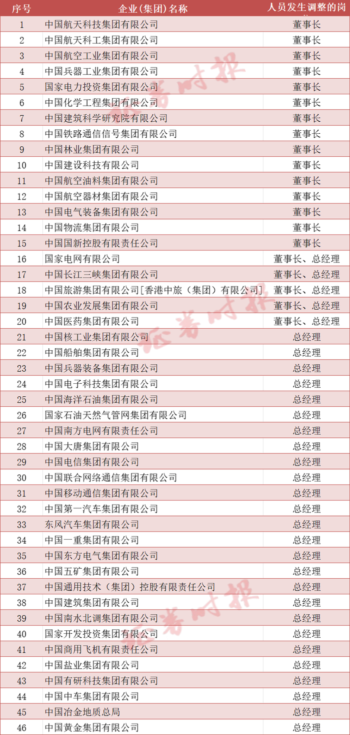 表:1—6月份“一二把手”调整的国资央企集团名单