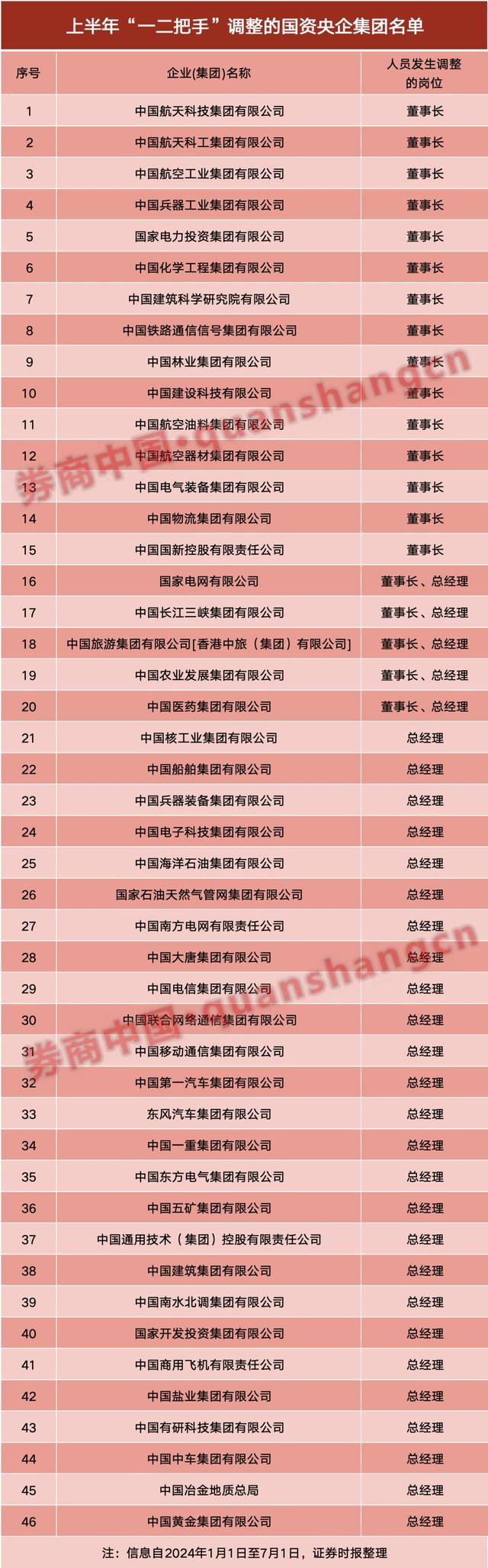 据证券时报记者不完全统计,今年1—6月份,至少有46户国资央企集团的“一二把手”调整。除了到龄退休外,跨公司调任增多、政企干部交流力度加大、多数企业总经理一职的空缺补齐成为新特点。此外,董事长和总经理由一人担任(下称“一肩挑”)的情况增多也成为看点。