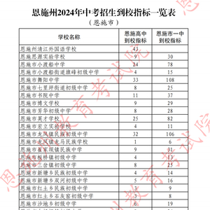 恩施州2024年中考招生到校指标一览表