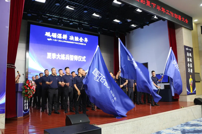 全面冲刺全年销售任务,国花瓷西凤酒“2024夏季大练兵誓师仪式”的口号声已经喊响。全体员工用共同信仰的集结号,宣告国花瓷西凤酒新的市场战的开端,口号声,也将持续激励着全体员工以更饱满的热情和更高的工作标准投入工作中。