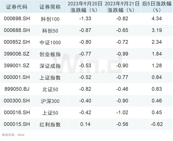 在成交量低点后5个交易日的行情中,科创100、科创50、中证1000快速回升,并收复此前跌幅。