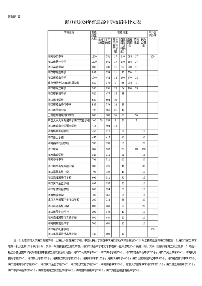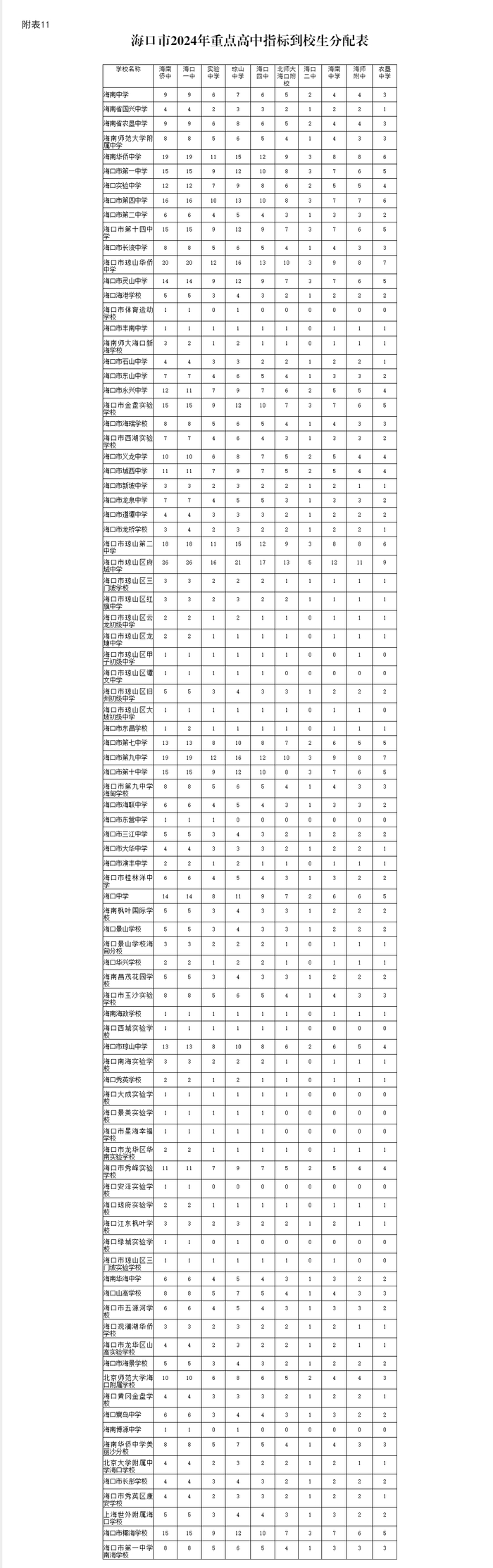 @中考生,海口10所重点高中指标到校计划分配表出炉