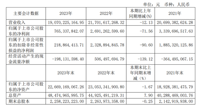 杉杉股份2023年业绩表现