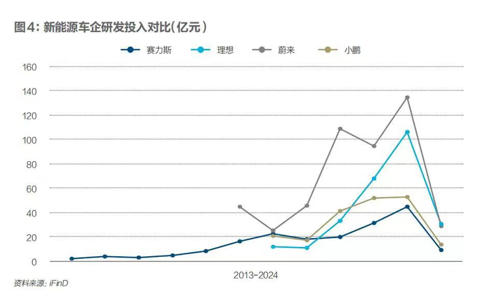 44亿元的研发投入,相较于其他新势力来说并不算多。2023年,蔚来研发投入134.31亿元,理想投入105.86亿元,小鹏52.77亿元。