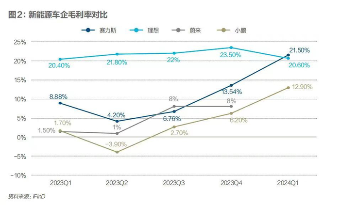 赛力斯方面向《财经》透露,一季度公司单车毛利率也不断提升,已经超过理想20.6%,达到21.5%。