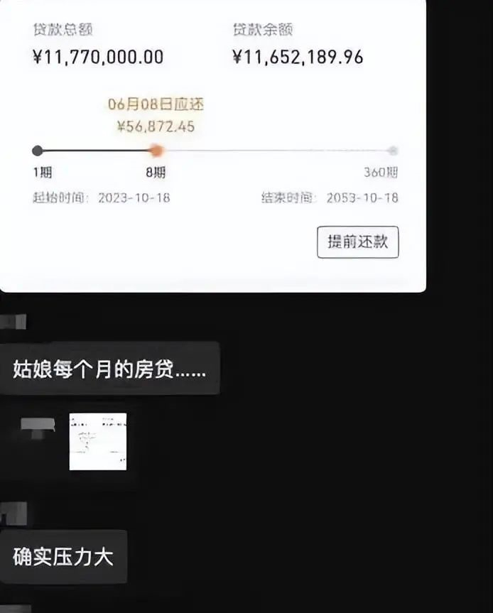 为了这套房子,她付出了所有的积蓄:房屋总价近1600万元,贷款1177万元,首付四百多万元,每月还款额56800多元。
