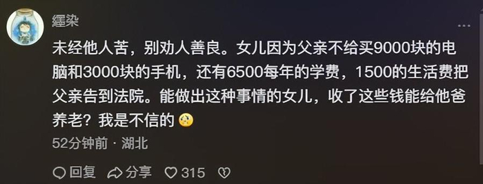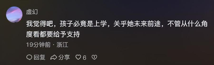 也有的网友表示,孩子毕竟还在上学,关乎孩子的未来,作为父亲的还是应该给予支持。