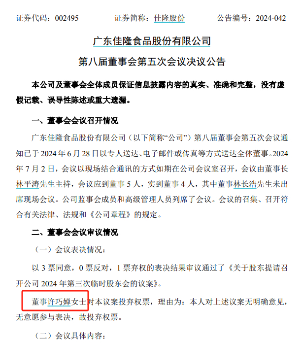 A股大瓜!佳隆股份75岁董事长提议罢免47岁儿子!