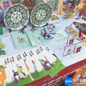 非遗拼图、非遗手机壳、非遗冰箱贴、非遗书签……她的摊位前摆满各式各样的文创产品。和非遗传承人制作的非遗产品不同,这些文创色彩更鲜亮、造型更独特、设计更大胆,有一种年轻人特有的青春气息。