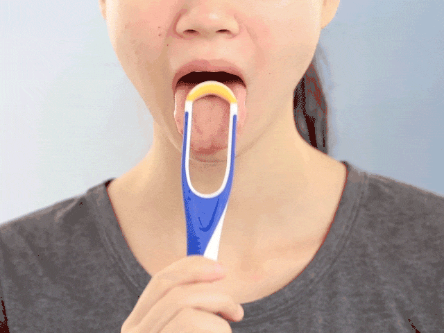 使用刮舌器的具体方法:伸出舌头,从舌面后1/3处开始,从后向前轻刮,不可用力,以免伤害到舌乳头。每刮一次记得用流水漱口,每次刮2~3下即可。