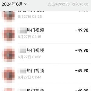 根据赵女士出示的支付记录截图,今年6月,杜女士通过微信支付花费了6992.7元。6月27日是杜女士看剧最投入的一天。当天凌晨1点25分,她向“XX热门视频”支付了49.9元,随后每隔约10分钟就支付一次;凌晨2点半,她最后一次向“XX热门视频”支付;凌晨3点过,她又两次向“XX科技”分别支付39.9元;早晨9点半,她又开始充值,向“XX剧场”支付了49.9元。这一天,杜女士总共为追短剧花费548.8元。