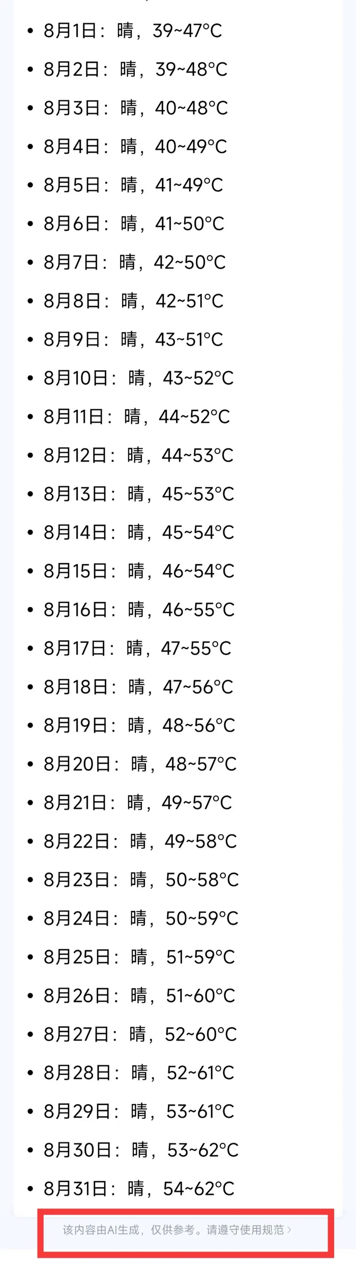 财联社7月5日讯,据重庆辟谣消息,近日,不少网民通过微信传播“重庆未来60天天气情况”,预测8月31日的气温将达54~62℃。一名网友发帖问“你信不信?反正我不信”。对此,重庆市气候中心回应:我也不信!