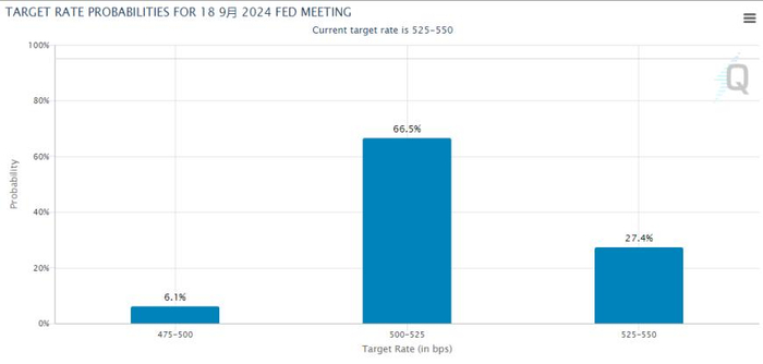 根据芝商所的FedWatch工具显示,投资者目前认为美联储在9月份降息的可能性接近73%。