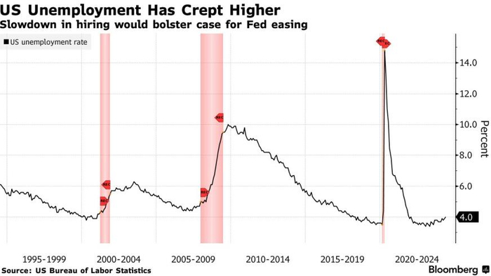 在众多分项数据中,法巴银行分析也认为,失业率的重要性将超越新增非农人口数量。该行指出,从技术上讲,美国失业率上升至4.2%就会触发萨姆法则。根据萨姆法则,当失业率的三个月移动均值相对于前12个月的低点上升0.5个百分点或更多时,美国经济就将陷入衰退。