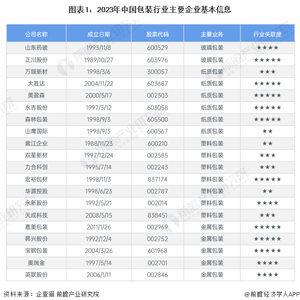 行业主要上市公司:山东药玻(600529);正川股份(603976);万顺新材(300057);大胜达(603687);美盈森(002303);紫江企业(600210);双星新材(002585);力合科创(002243);宏裕包材(837174);嘉美包装(002969);昇兴股份(002752);宝钢包装(601968)等