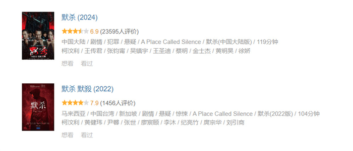 一个有意思的现象是,去年上影节时,首版《默杀》展映后,豆瓣评分一度从8.2飙到8.4,如今跌至7.9。而新版《默杀》在故事保留原班不变,演员人气与演技均在线,制作更加成熟精良的情况下,豆瓣开分却仅6.9,观众评价呈现出有人爱有人骂的两极分化,个中缘由又是什么呢?