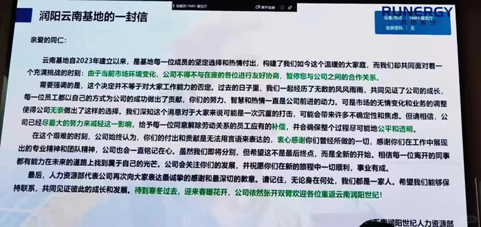 有媒体公开报道,润阳股份在未经提前通知的情况下,发布内部邮件表示,5月份绩效工资不再发放,以此“共同应对困难”;其在云南的下属企业则据传已经开始裁员,今年新招进来的员工基本都被裁掉。