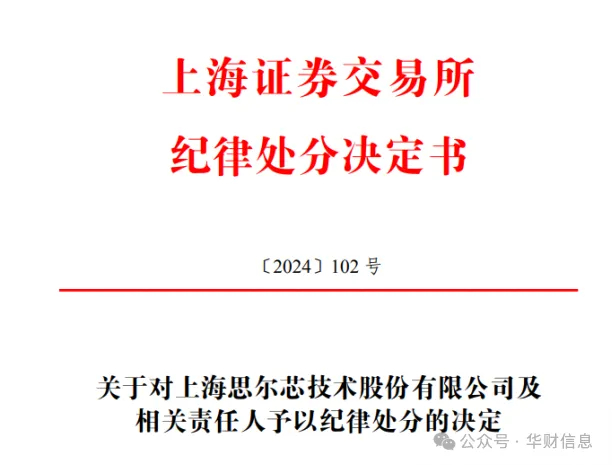 2024 年 6 月 11日,上海证券交易所发布了对上海国微思尔芯技术股份有限公司(以下简称“思尔芯”)的纪律处分决定书,对思尔芯、实控人黄学良、总经理ToshioNakama、副总裁林铠鹏、董事会秘书熊世坤、财务负责人黎雄应、监事会主席杨录,分别作出了纪律处分。