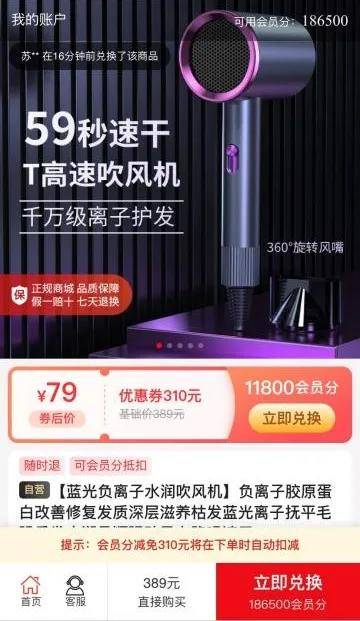 体验调查发现,在某运营商积分商城兑换“中粮福临门自然香黑龙江长粒香米5kg”、厦门航空积分商城兑换“康巴赫 铁胆智能电饭煲3L KBH-30A”、某运营商积分商城兑换天堂伞,使用积分兑换付出的价格均高于市场价。