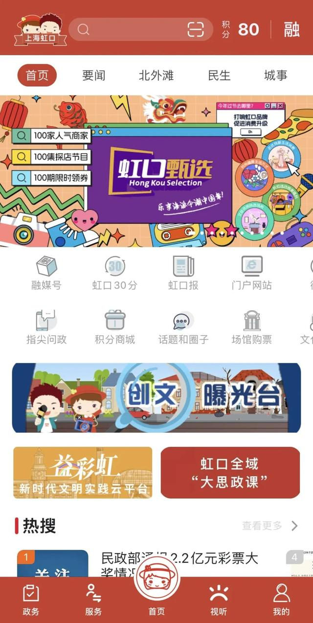 ②从APP客户端进入“虹口甄选”首页,拼手速领取福利优惠