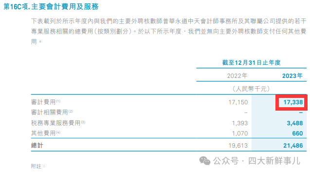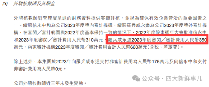 根据公司2023年年度报告披露,该公司2023年度支付境外罗兵咸永道350万元的审计费用,支付境内信永中和310万元的审计费用。