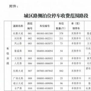 (一)经批准的道路临时泊位实行计时收费(见附件)